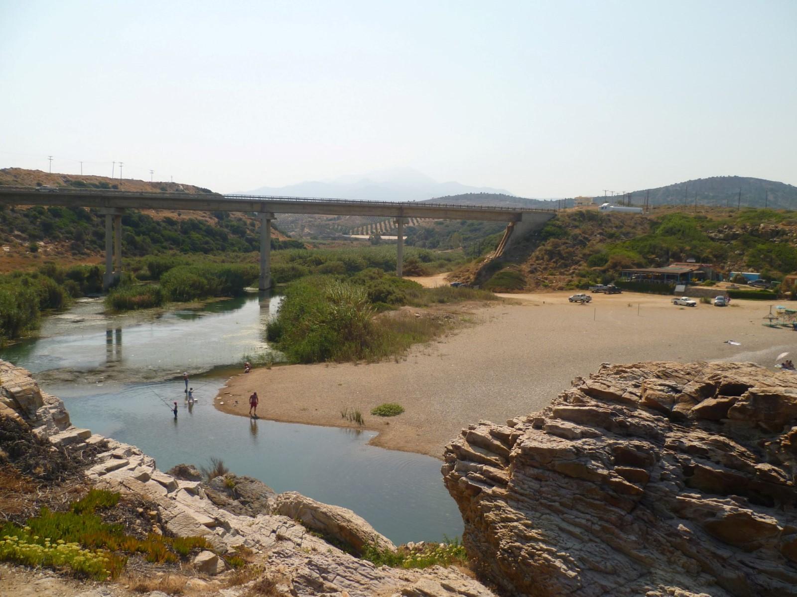 It is named after the homonym river that empties in the east end of the beach. The small beach is sandy and has crystal clear water, which is very cool because of the river, which has water all year round and forms a small lake near the shore.